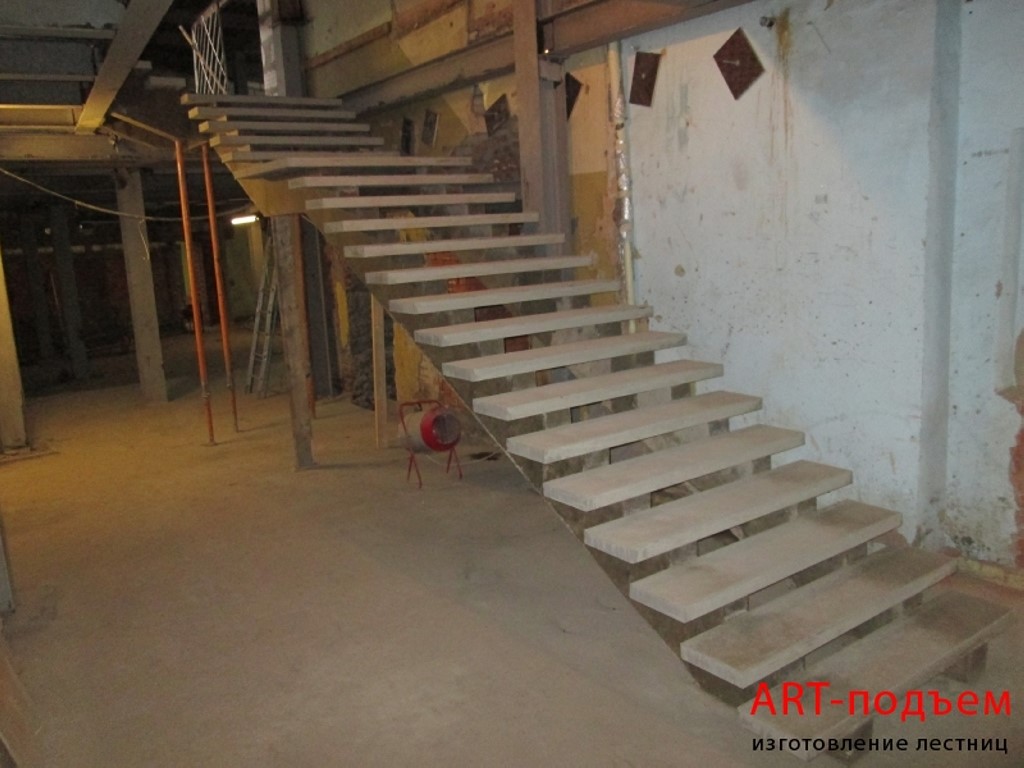 Компания «АРТ-подъём» изготавливает лестницы на косоурах различных конфигураций:
