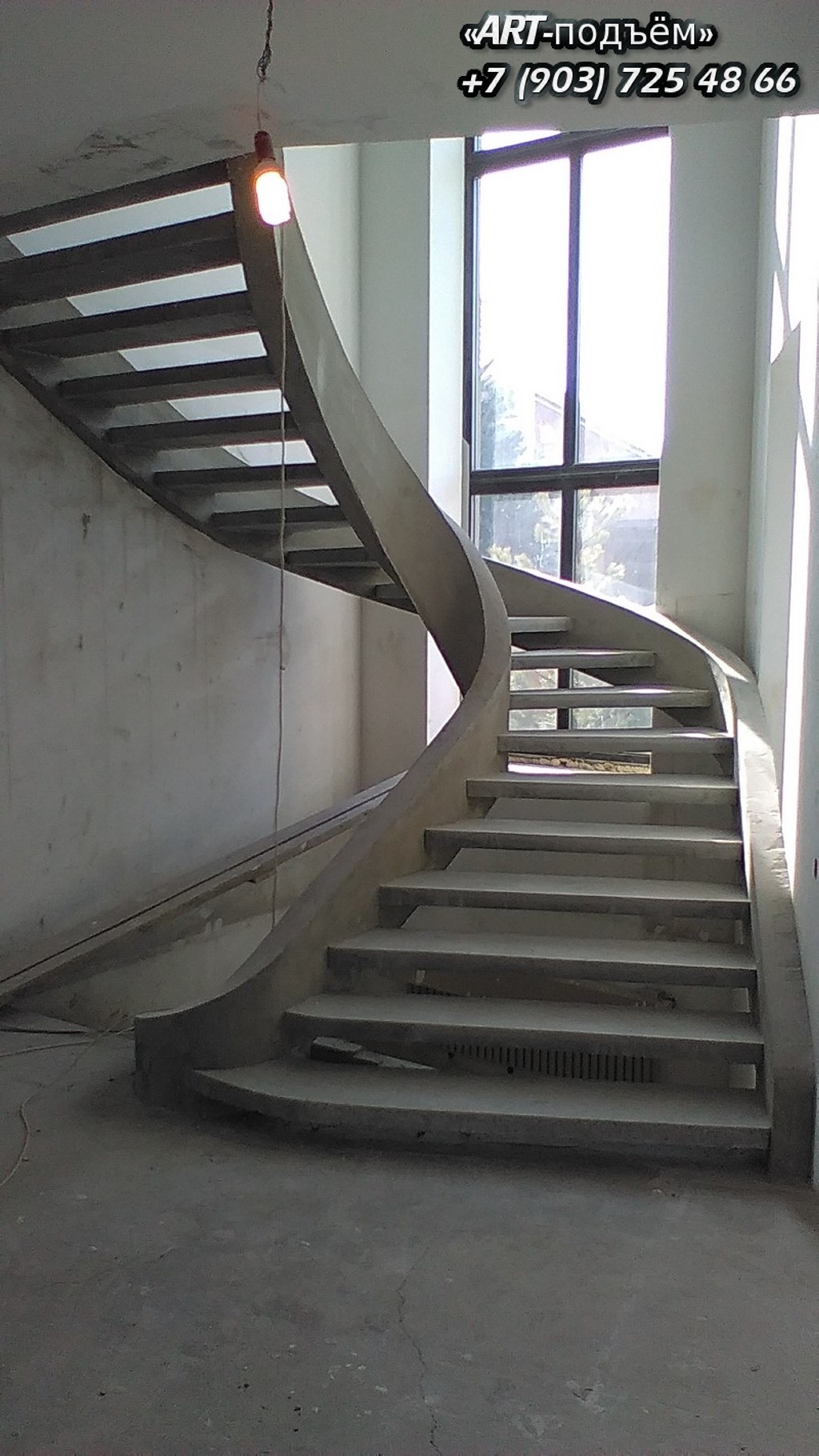 Компания «АРТ-подъём» изготовила и смонтировала множество бетонных лестниц на косоурах для частных домов, коттеджей и коммерческих объектов в Москве, Московской области и других регионах. Наши конструкции украшают интерьеры в различных стилях — от минимализма до классики.