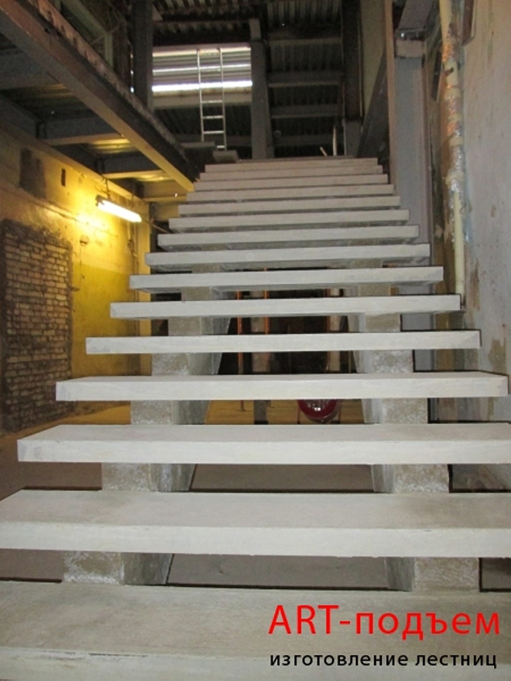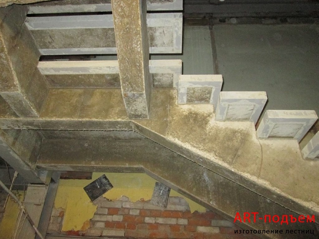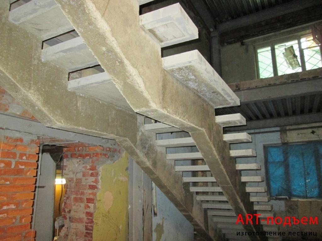 Бетонные косоуры изготавливаются из монолитного железобетона с армированием, что обеспечивает:
