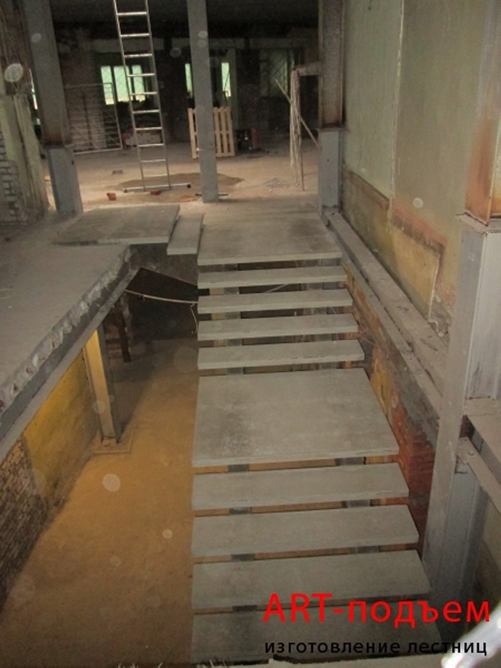 - Косоуры — наклонные несущие балки из монолитного железобетона